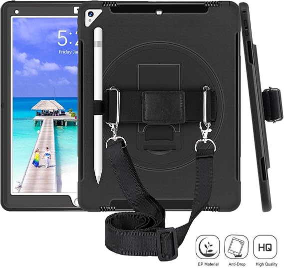 Amazon Com Ipad Pro 12 9 Case 2017 Ipad Pro 12 9 2nd Generation Case With Pencil Holder Heavy Duty Rugged Full Body Shockproof Protective Case Cover With 360 Rotation Stand Handle Hand Shoulder Strap