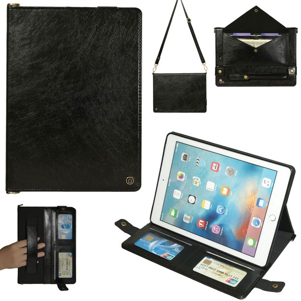 Allytech Ipad Pro 12 9 Case 2018 3rd Gen Premium Pu Leather Stand Hand Wrist Detachable Shoulder Carrying Strap Auto Sleep Wake Smart Cover Folio Shockproof Case For Apple Ipad Pro 12 9 Black