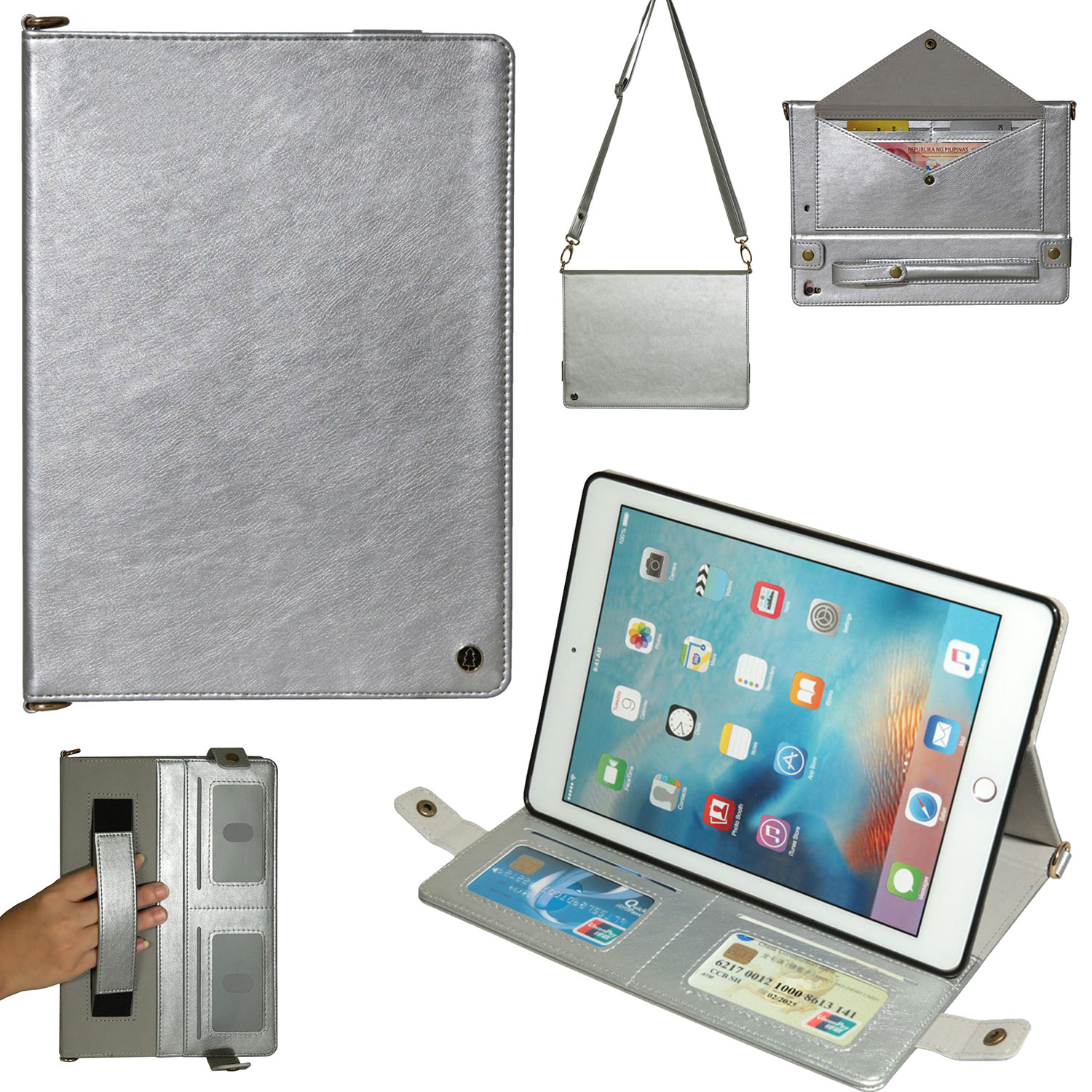 Allytech Ipad Pro 12 9 Case 2018 3rd Gen Premium Pu Leather Stand Hand Wrist Detachable Shoulder Carrying Strap Auto Sleep Wake Smart Cover Folio Shockproof Case For Apple Ipad Pro 12 9 Silver