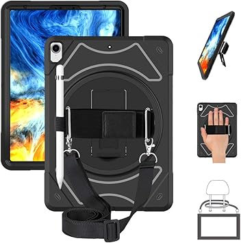 Amazon Com Braecn Ipad Pro 12 9 Case 2020 4th Gen Support 2nd Gen Ipad Pencil Charging Rugged Heavy Duty Shockproof Case With Shoulder Strap Rotating Hand Strap Kickstand For Ipad 12 9 Case 2018 3rd Gen Black