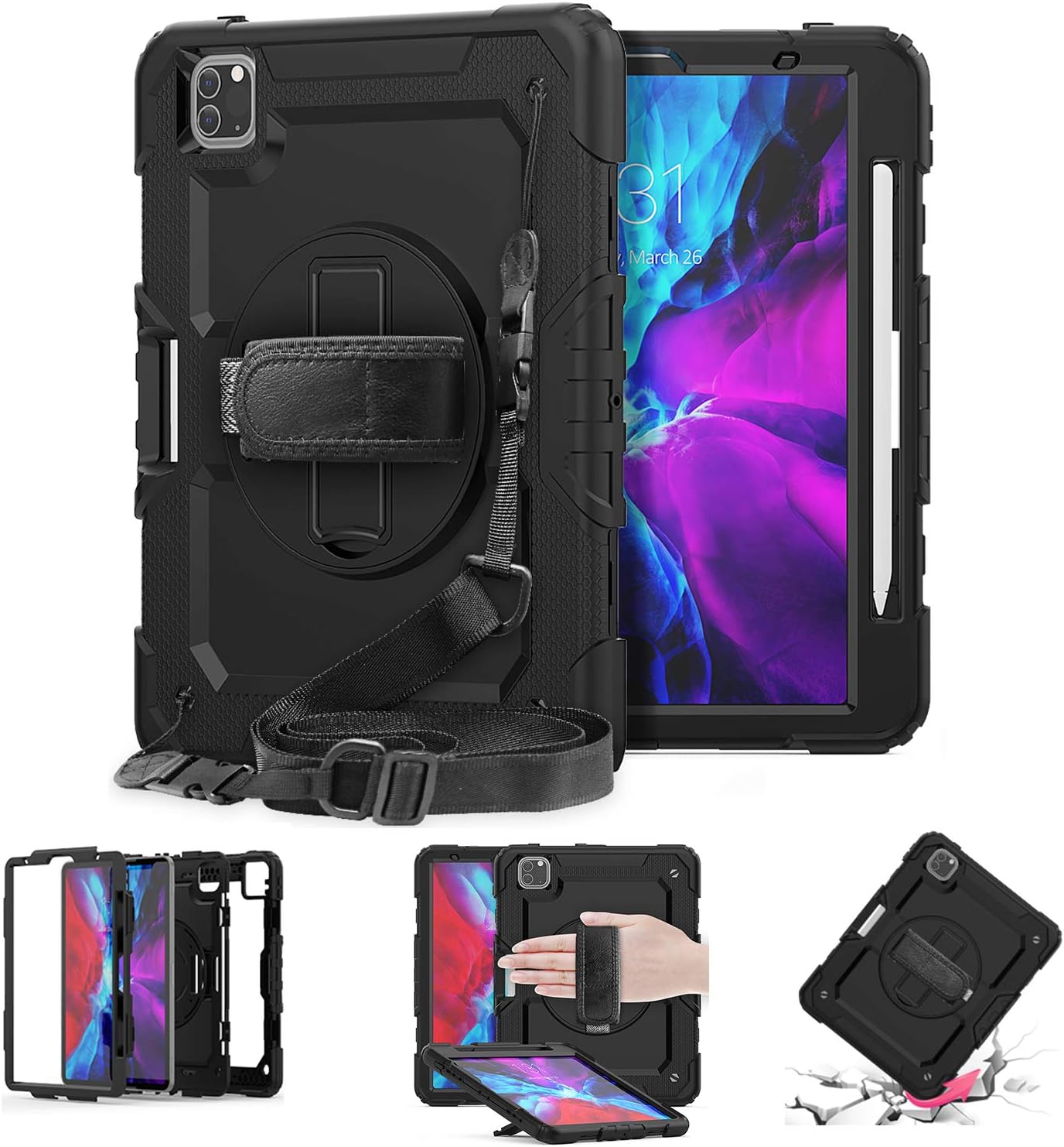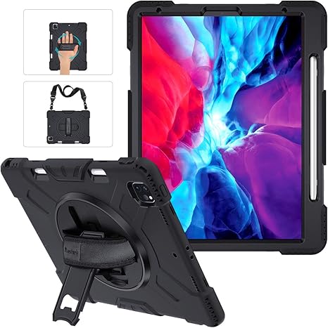 Th000 Rugged Case For Ipad Pro 12 9 Inch 4th Generation 2020 Shockproof Heavy Duty Protective Cover With Soft Screen Protector Rotatable Kickstand Hand Strap Adjustable Shoulder Strap Newegg Com