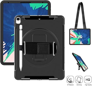 Amazon Com Miesherk Ipad Pro 12 9 Case 2018 3rd Gen Not Fit 2020 Heavy Duty Case With Stand Hand Strap Shoulder Strap Pencil Holder Support Pencil Wireless Charging For Ipad Pro 12 9 Inch 2018 Release Black Computers