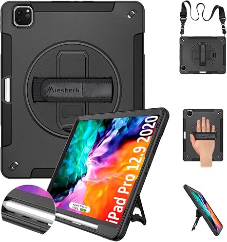 Amazon Com Miesherk Ipad Pro 12 9 Case 2020 2018 With Pencil Holder Support Pencil Charging Military Grade Protective Cover 360 Rotatable Kickstand For Ipad Pro 12 9 4th Gen Included Hand Shoulder Strap Computers Accessories