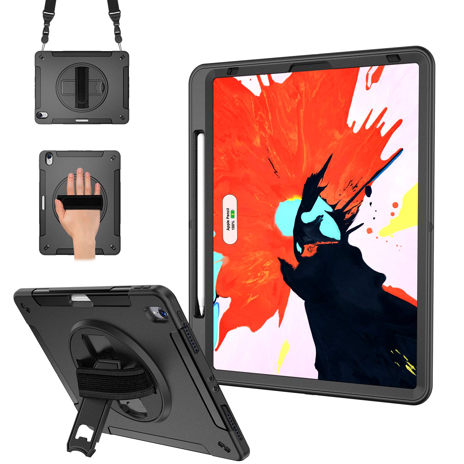 Amazon Com Supfives Ipad Pro 12 9 Case 2018 Not For 2020 Model With Pencil Holder Support Pencil Charging Shoulder Strap Hand Strap 360 Rotating Stand Heavy Duty Case For Ipad 12 9 3rd Generation Black Computers Accessories