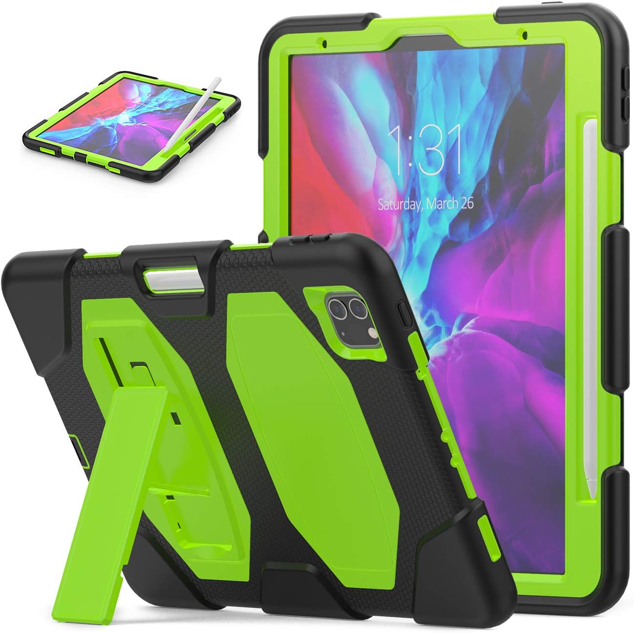 Amazon Com Seymac Ipad Pro 11 Case 2020 Full Body Protection Rugged Shockproof Ipad Pro 11 Inch Case With Kickstand And Wireless Pencil Holder Cover For Ipad Pro 11 2018 2020 Black Green Computers Accessories
