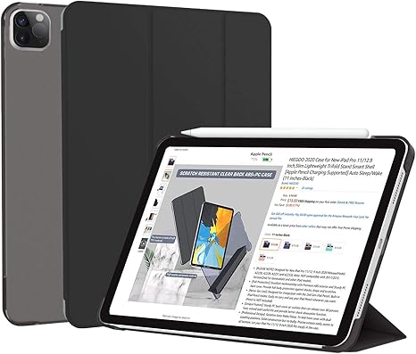 Amazon Com Hiegoo Ipad Pro 11 Case 2020 2018 Slim Lightweight Trifold Stand Cover For Ipad Pro 11 2nd Gen 2020 Apple Pencil 2 Charging Supported Auto Sleep Wake Black Computers Accessories