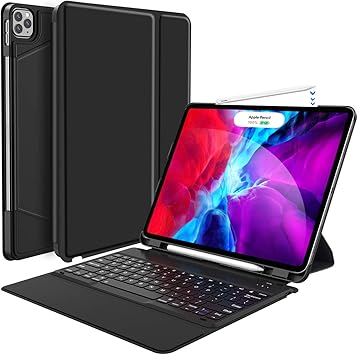 Amazon Com Ipad Pro 12 9 2020 Keyboard Case With Touchpad 4th Generation Backlits Bluetooth Keyboard Flip Smart Cover With Pencil Holder Support Apple Pencil Charging For Ipad 12 9 2020 12 9 2020 Black Computers Accessories