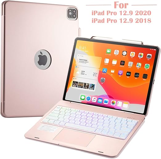 Amazon Com Ipad Pro 12 9 2020 Keyboard Case With Touchpad 4th Generation Backlits Bluetooth Keyboard Flip Smart Cover With Pencil Holder Support Apple Pencil Charging For Ipad 12 9 2020 12 9 2020 Rose Gold Computers Accessories
