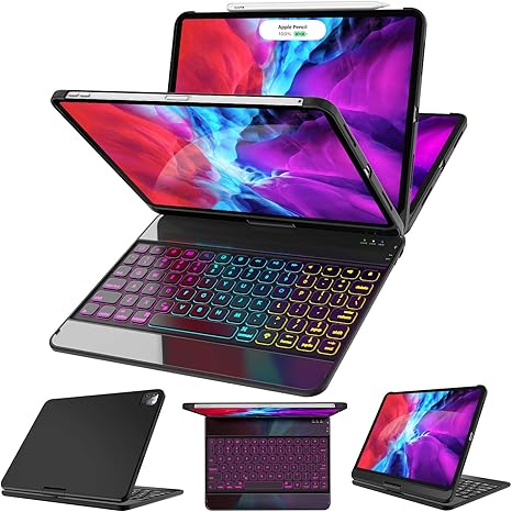 Amazon Com Keyboard Case For Ipad Pro 11 2020 2018 1st 2nd Generation 360 Rotate 17 Color Backlit Wireless Bt Auto Sleep Wake Ipad Pro 11 Case With Keyboard Compatible With Apple Pencil Black Computers Accessories