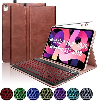 Amazon Com Ipad Keyboard Case For New Ipad Air 4 Generation 10 9 2020 Ipad Pro 11 2018 Leather Pu Sewing Case With Detachable 7 Color Backlit Wireless Keyboard For Ipad Air 4th 2020 Computers Accessories