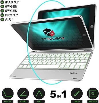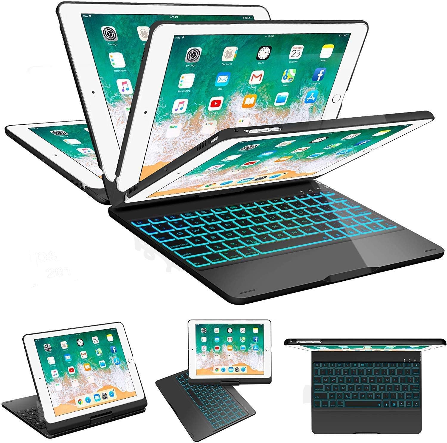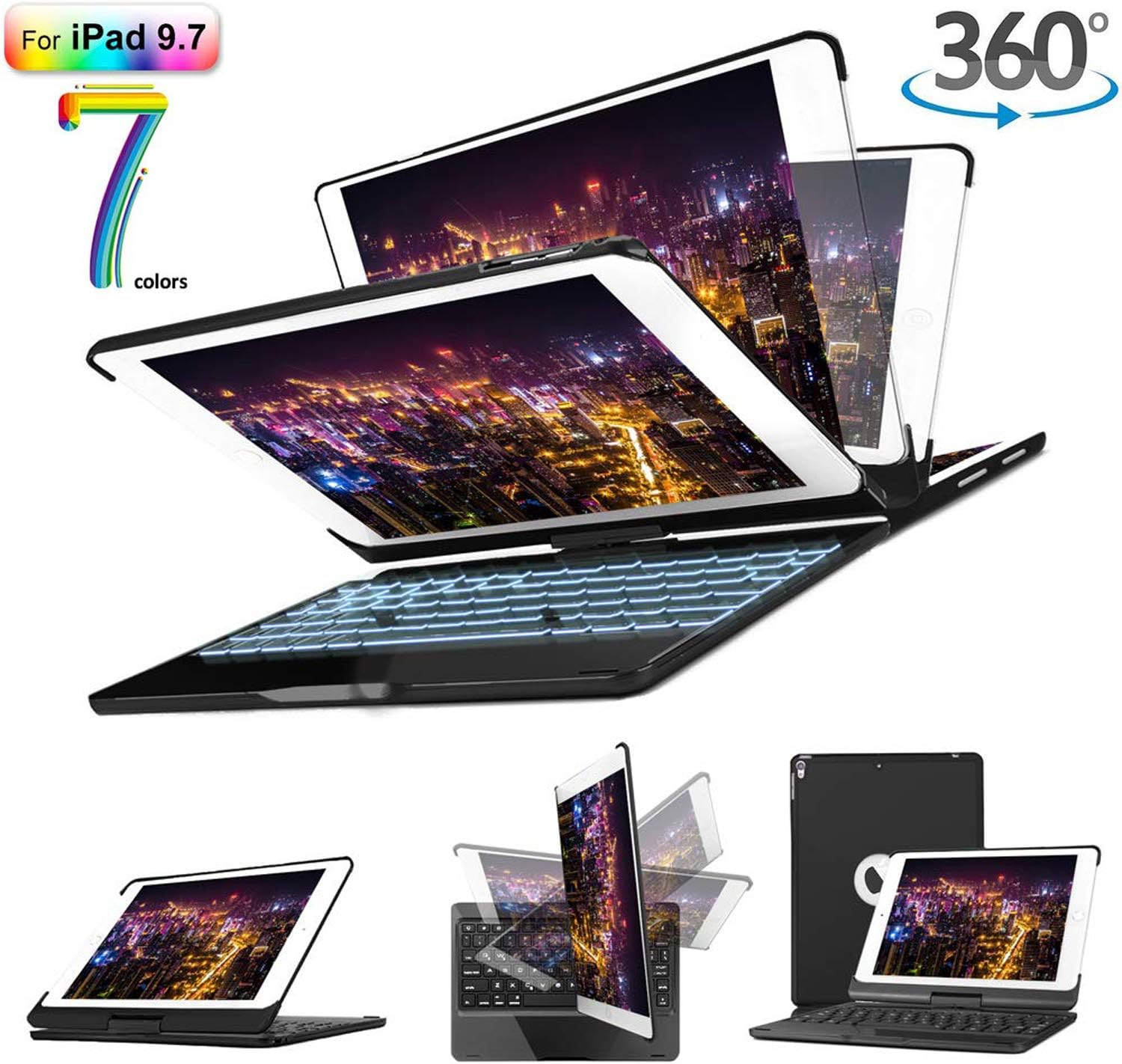 Amazon Com Ipad Keyboard Case For Ipad 2018 6th Gen Ipad 2017 5th Gen Ipad Pro 9 7 Ipad Air 2 1 360 Rotatable Wireless Bt Backlit 7 Colors Ipad Case With Keyboard For Ipad Os 9 7 Black Electronics