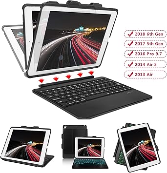 Amazon Com Ipad Keyboard Case Compatible With 2018 Ipad 6th Gen 2017 Ipad 5th Gen Ipad Pro 9 7 Ipad Air 2 Air 1 360 Rotatable Auto Sleep Wake Ipad Case With Backlit Keyboard