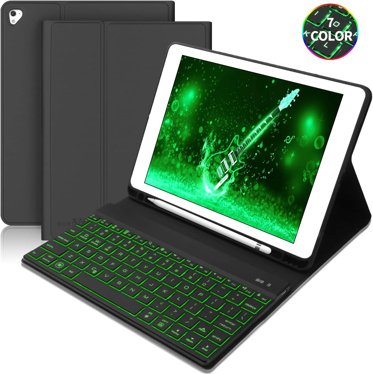 Amazon Com Boriyuan Keyboard Case For Ipad 9 7 2018 6th Gen Ipad 9 7 2017 5th Gen Ipad Air 2 1 Ipad Pro 9 7 7 Colors Backlit Detachable Keyboard Slim Leather Folio Cover With Built In Pencil Holder Black Computers Accessories