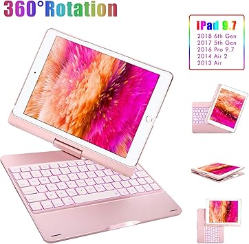 Amazon Com Greenlaw Ipad 9 7 Keyboard Case Compatible Ipad 2018 6th Gen 2017 5th Gen Ipad Pro 9 7 Air 2 Air 360 Rotate 7 Color Backlit Wireless Bt Keyboard Case Cover With Auto Wake Sleep Rose Gold Office Products