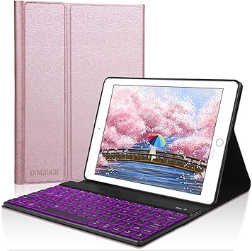 Amazon Com Ipad Keyboard Case For New 2018 Ipad 2017 Ipad Ipad Pro 9 7 Ipad Air 1 And 2 Dingrich Slim Leather Folio Cover Wireless Detachable Keyboard 7 Color Backlight Rose Gold Computers Accessories