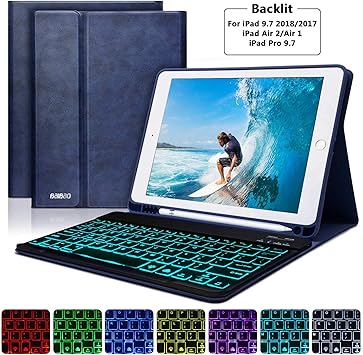 Amazon Com Ipad Keyboard Case For New 2018 Ipad 2017 Ipad Ipad Pro 9 7 Ipad Air 1 And 2 Dingrich Slim Leather Folio Cover Wireless Detachable Keyboard 7 Color Backlight Blue Computers Accessories