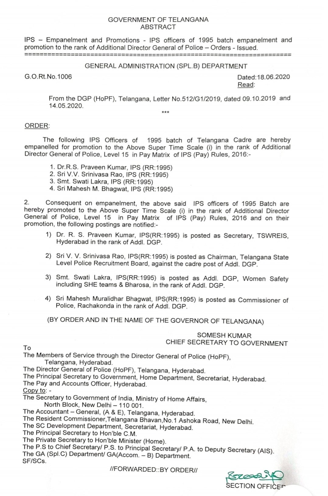 Rachakonda Police On Twitter Four Ips Officers Of 1995 Batch Including Cp Rachakonda Shri Mahesh Bhagwat Ips Were Empanelled For Promotion To The Rank Of Additional Director General Of Police By The State Government Https T Co Cqz6rln2qn
