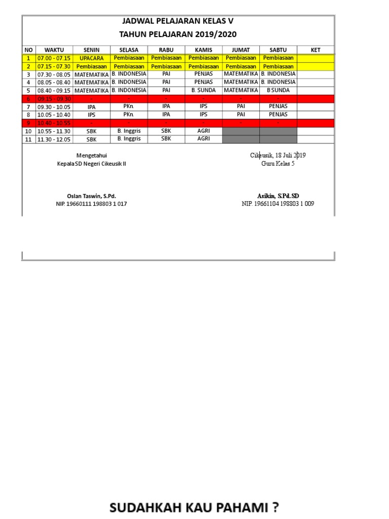 Download Jadwal Pelajaran Sd K13 Kelas 1 2 3 4 5 Dan 6 Tahun Pelajaran 2020 2021 Basirin Com