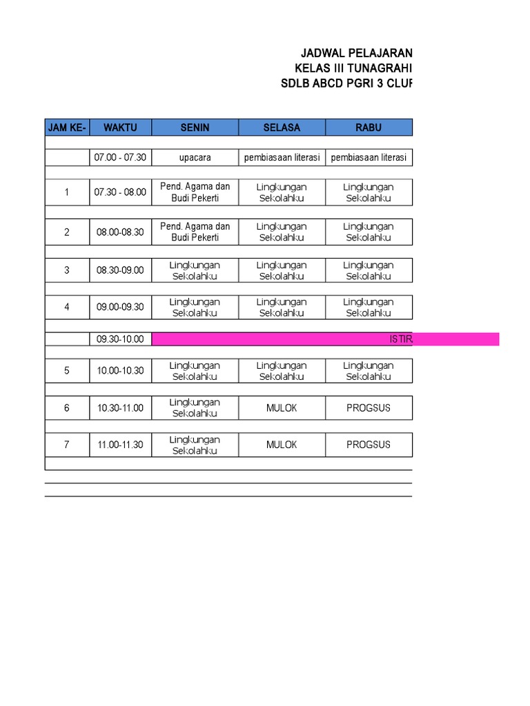 Jadwal Pelajaran Kurikulum 2013 Kelas 5 Sd Mi Format Excel Dunia Pendidikan