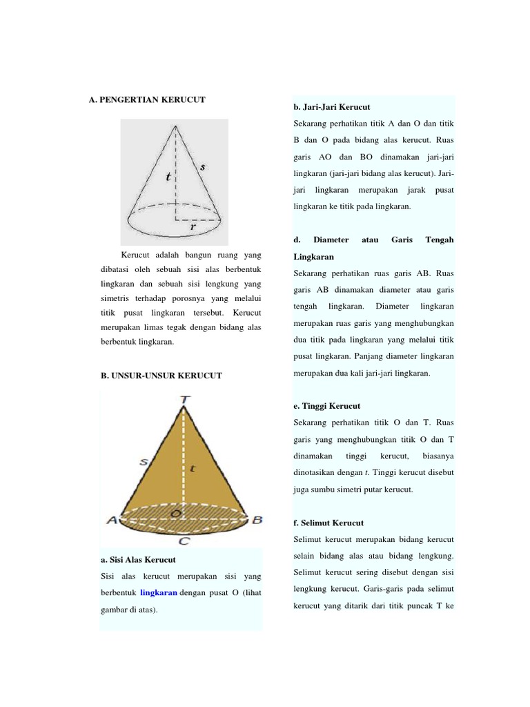 Rumus Luas Permukaan Kerucut Dan Rumus Volume Kerucut Beserta Contoh Soalnya Berpendidikan Com