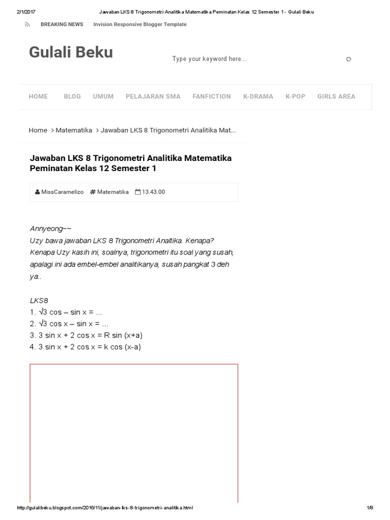 Kunci Jawaban Matematika Peminatan Kelas 11 Kurikulum 2013 Sukino Semester 2 Guru Ilmu Sosial