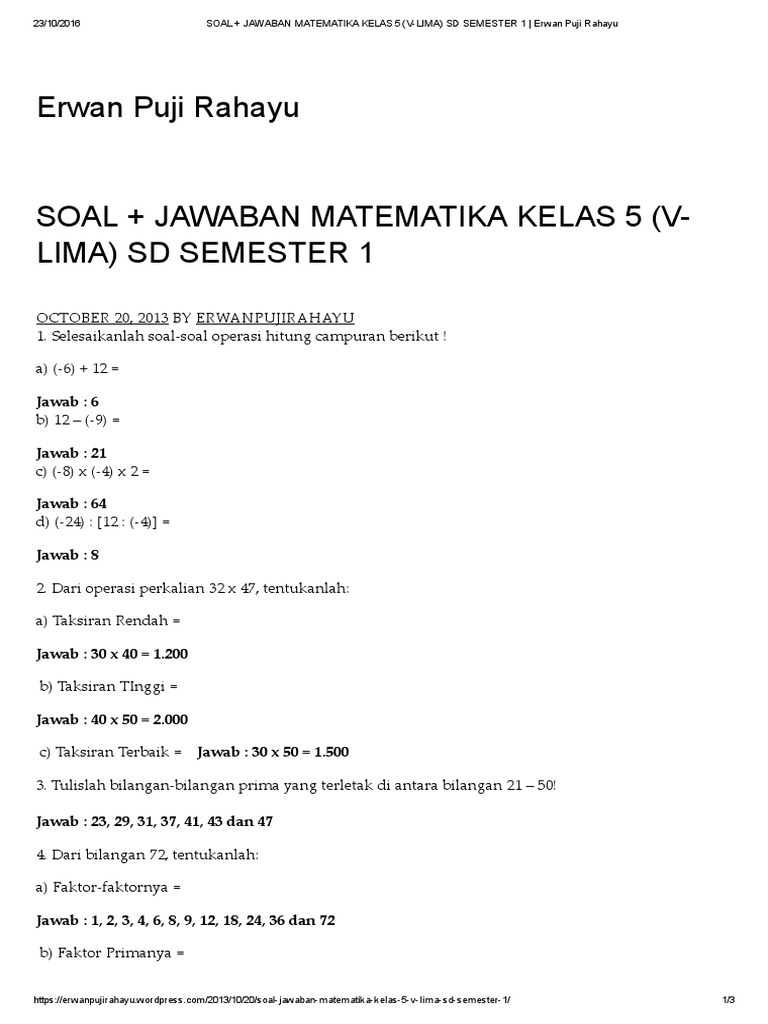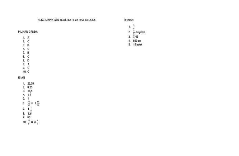 Kunci Jawaban Senang Belajar Matematika Sd Mi Kelas 5 Kurikulum 2013 Revisi 2018 Sanjayaops