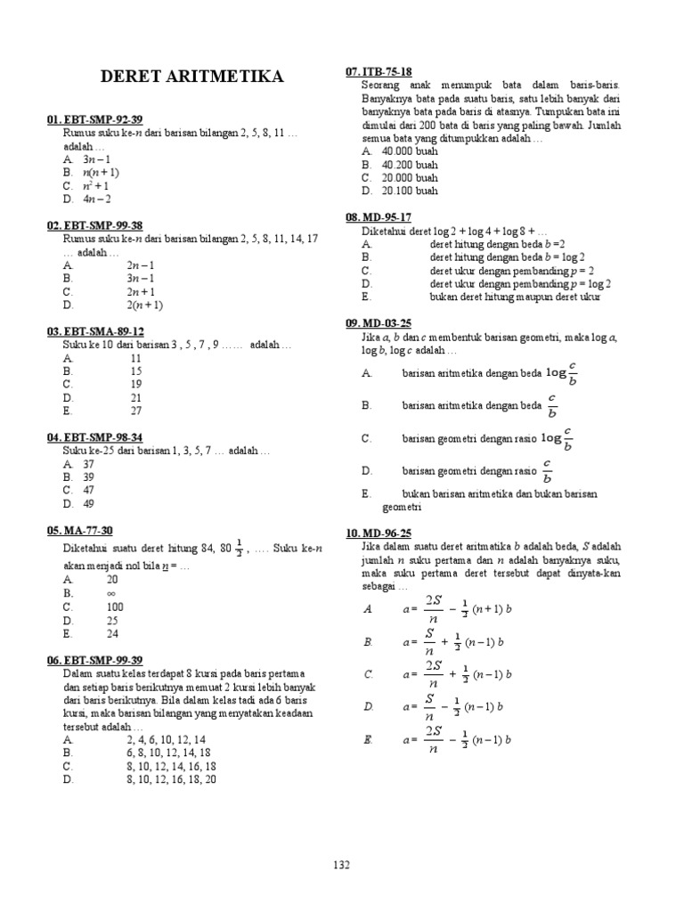Contoh Soal Barisan Dan Deret Aritmatika Geometri Pengertian Rumus Sifat Sifat Notasi Sigma Tak Hingga Hitung Keuangan Bunga Tunggal Majemuk Anuitas Matematika