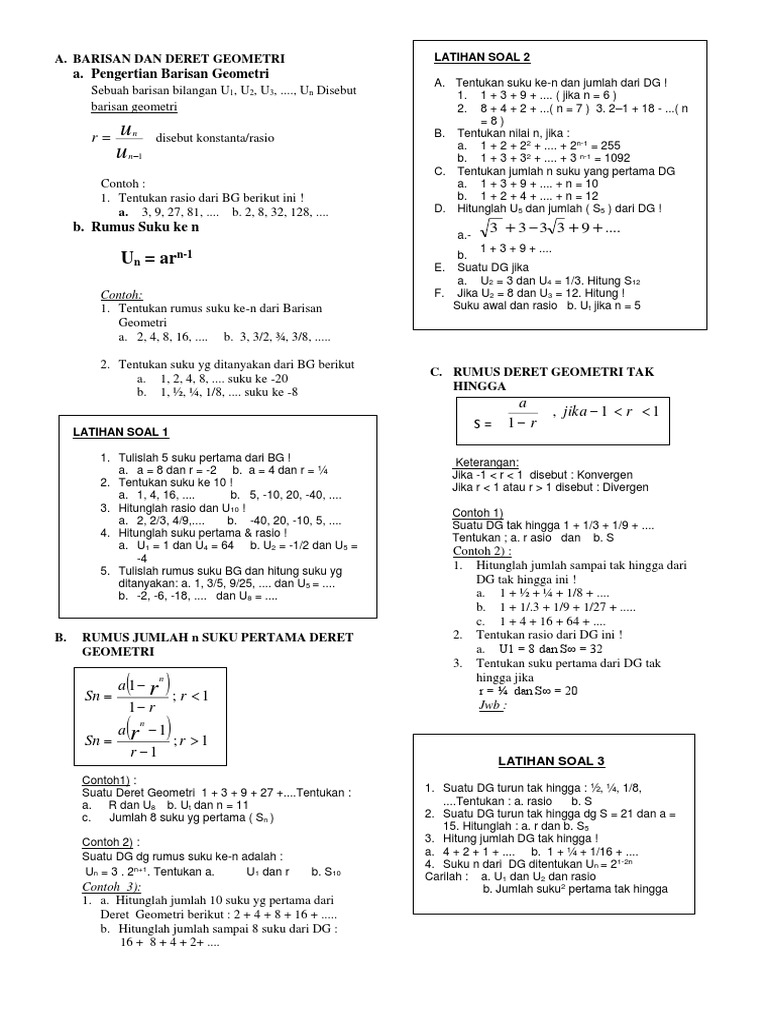 Barisan Dan Deret 2 Deret Geometri Tak Hingga Adalah 3 4 Sedangkan Jumlah Suku Suku Nomor Genapnya Pdf Document