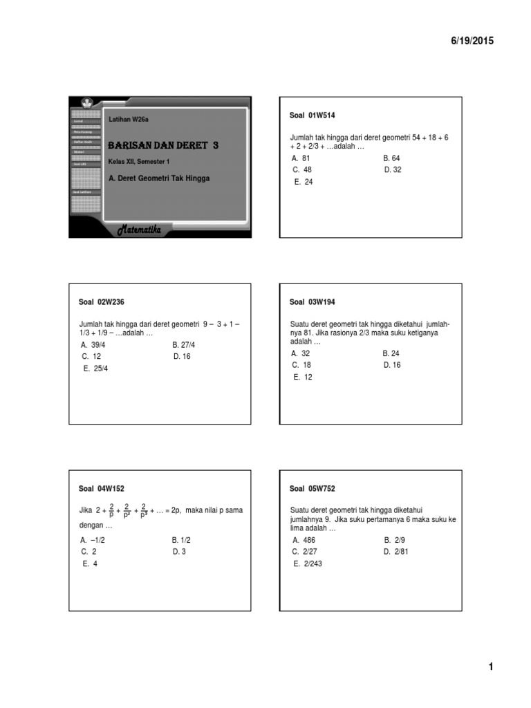 Contoh Soal Deret Geometri Tak Hingga Pilihan Ganda Dan Jawabannya Deret Geometri Tak Hingga Merupakan Suatu Deret Geometri Dapat Menjumlahkan Suku Sukunya Sampai Menuju
