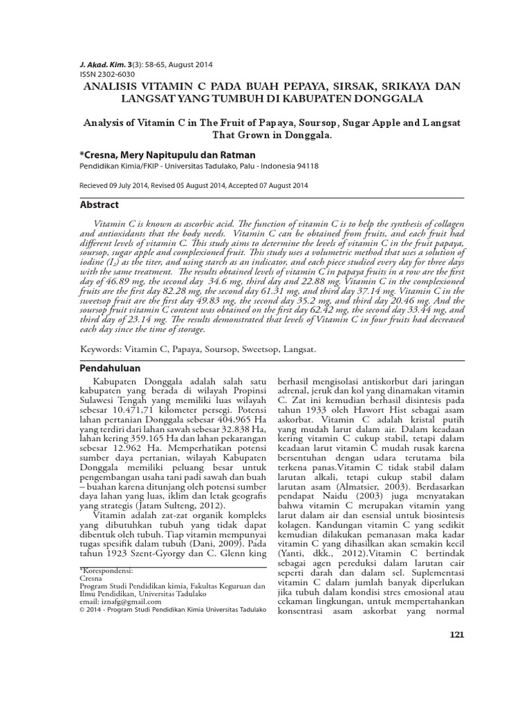 Identification Of Ascorbic Acid Content In Carica Papaya L Using Iodimetry And Uv Vis Spectrophotometry Indonesian Journal Of Medical Laboratory Science And Technology