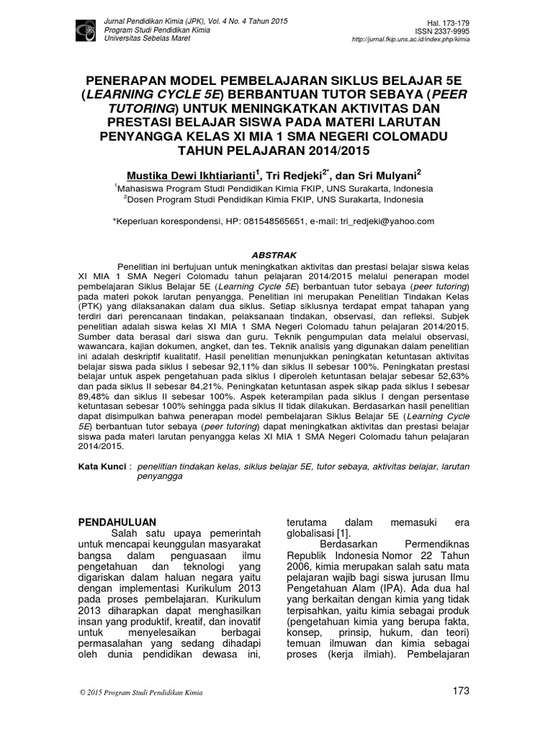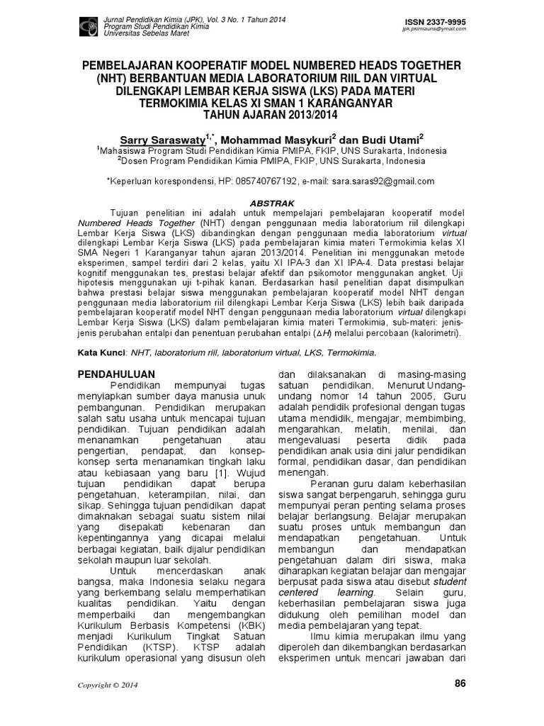 Jurnal tentang pengertian materi pada ilmu kimia p. This national journal is devoted to the publication of original research on chemistry fundamental process and applied chemistry and chemistry education. Jurnal pendidikan kimia issn 2337 9995 merupakan jurnal resmi yang dikelola dan diterbitkan secara online oleh program studi pendidikan kimia fakultas keguruan dan ilmu pendidikan universitas sebelas maret surakarta.