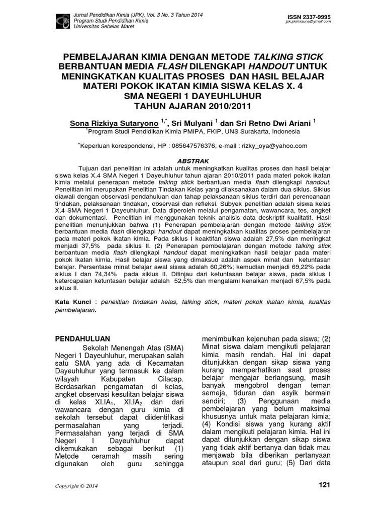 Evaluasi Jurnal Kimia Dan Pendidikan Kimia