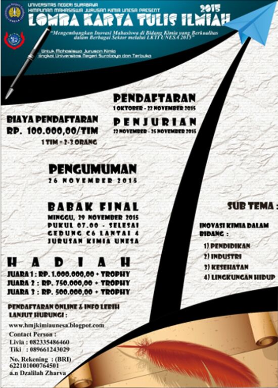 Hmj Kimia Unesa Lomba Karya Tulis Ilmiah Lkti Jurusan Kimia Unesa 2015