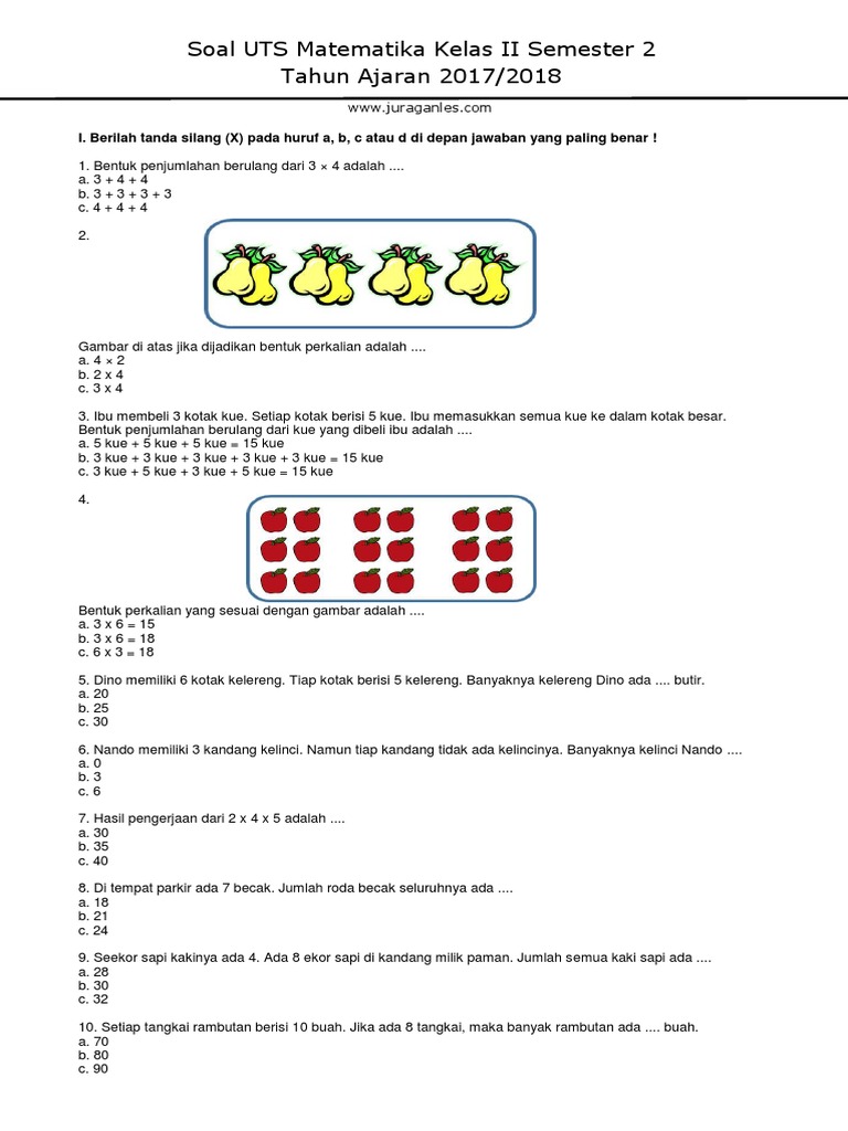 Contoh Soal Matematika Kelas 2 Sd Semester 1 2020