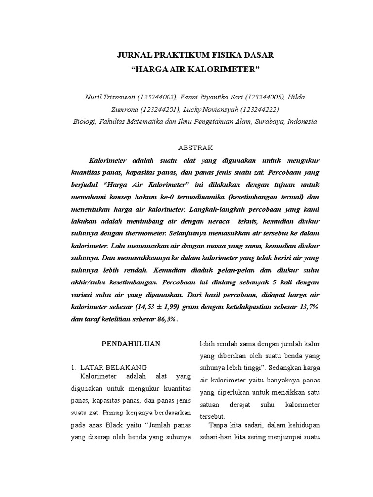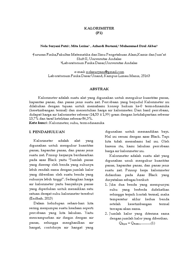 Doc Laporan Fisika Kegunaan Asas Black Pada Kalorimeter Selestina Stefanie Academia Edu