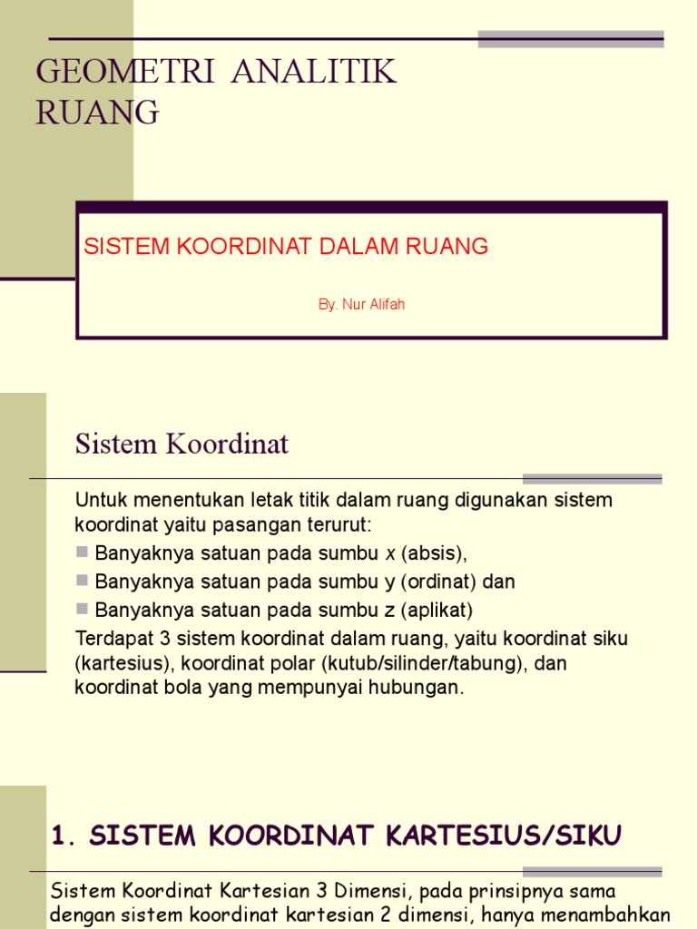 Vektor Dan Sistem Koordinat Cartesian Zainul Fanani