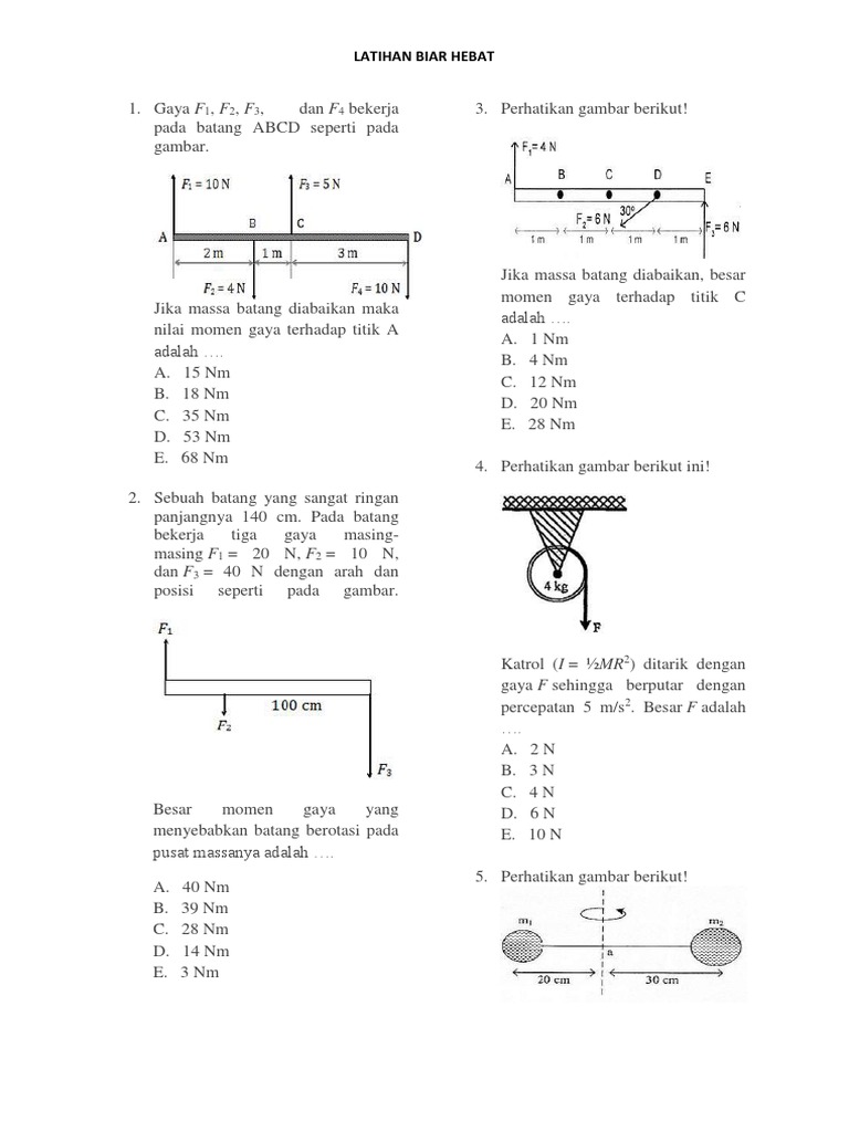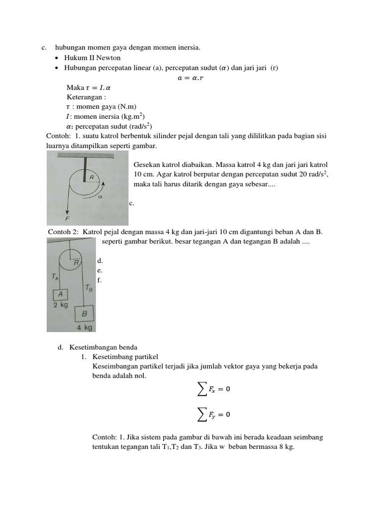 Momen Gaya Dan Momen Inersia Online Momen Gaya Dan Momen Inersia Silinder Pejal Atau Cakram Terhadap Diameter Pusat I M R M 2 4 12 8 Cincin Tipis Terhadap Pdf Document