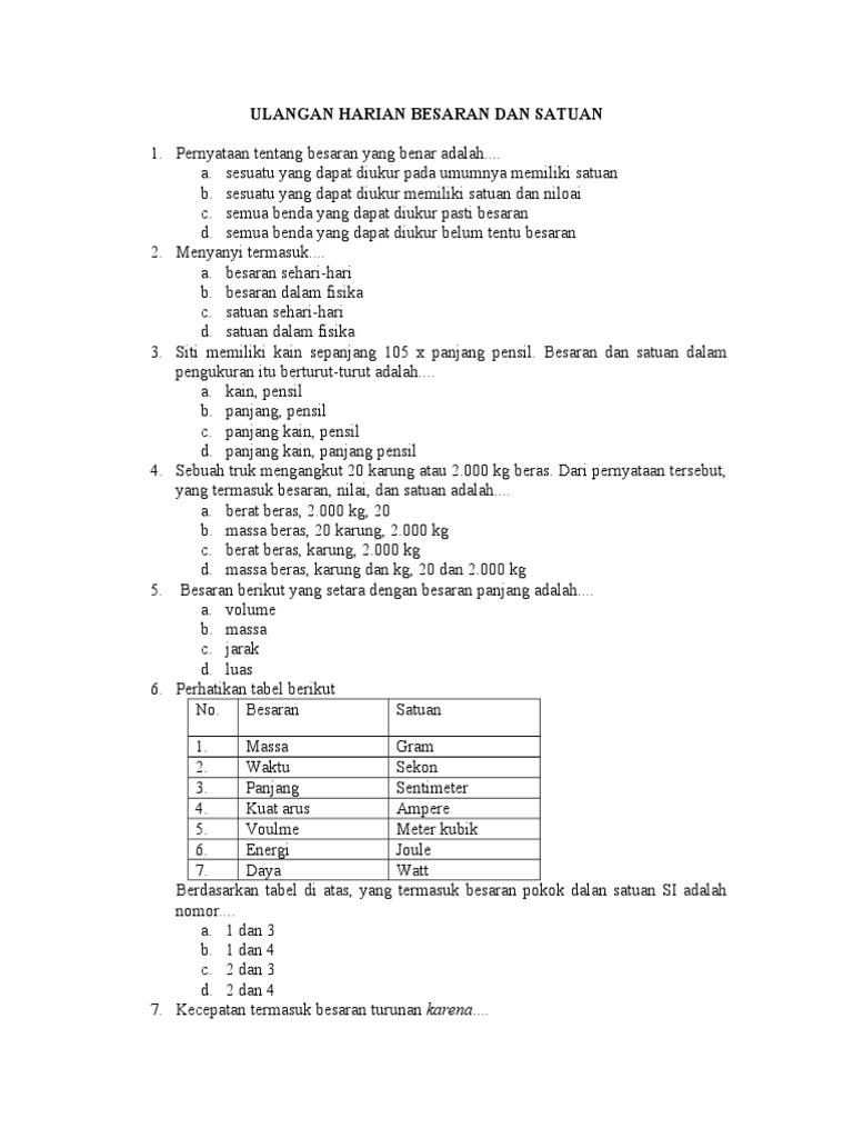 1 Perhatikan Tabel Berikut Pada Tabel Diatas Yang Termasuk Besaran Pokok Satuan Dan Alat Ukur Dan Brainly Co Id
