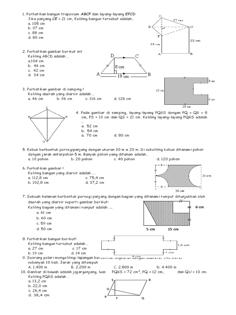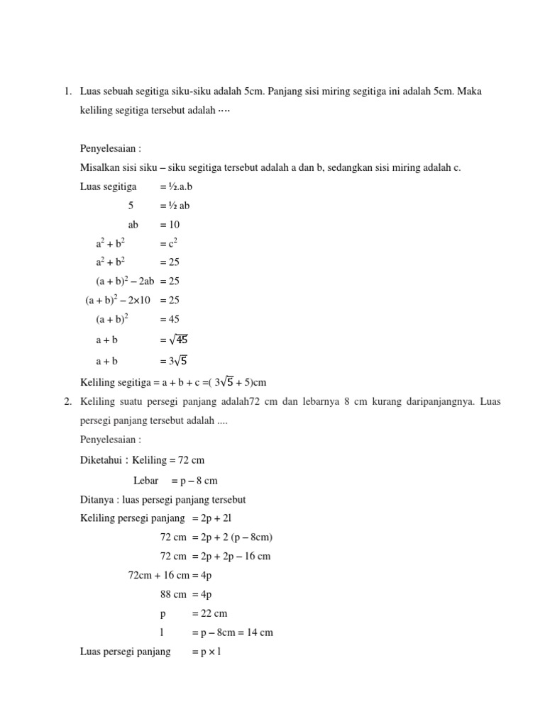 Kumpulan Soal Luas Gabungan Bangun Datar Docx Kumpulan Soal Luas Gabungan Bangun Datar Luas Gabungan Bangun Datar Dapat Dicari Dengan Membagi Bangun Course Hero
