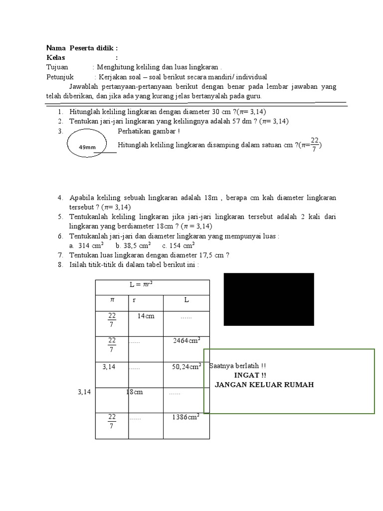 Soal Luas Dan Keliling Lingkaran Plus Kunci Jawaban Juragan Les