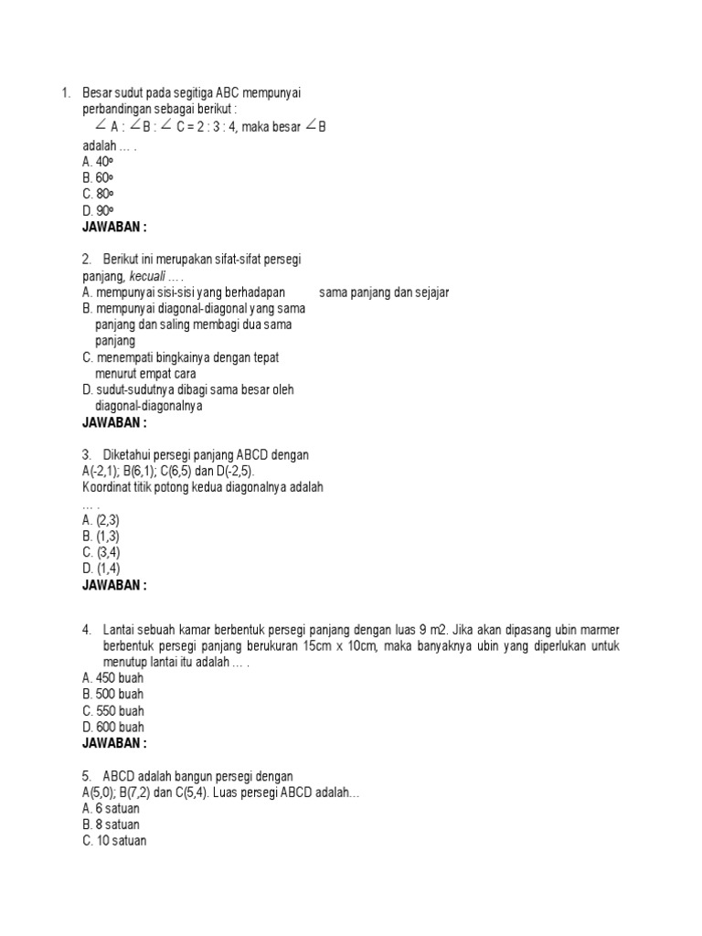 Contoh Soal Pembahasan Segi Empat Tingkat Smp