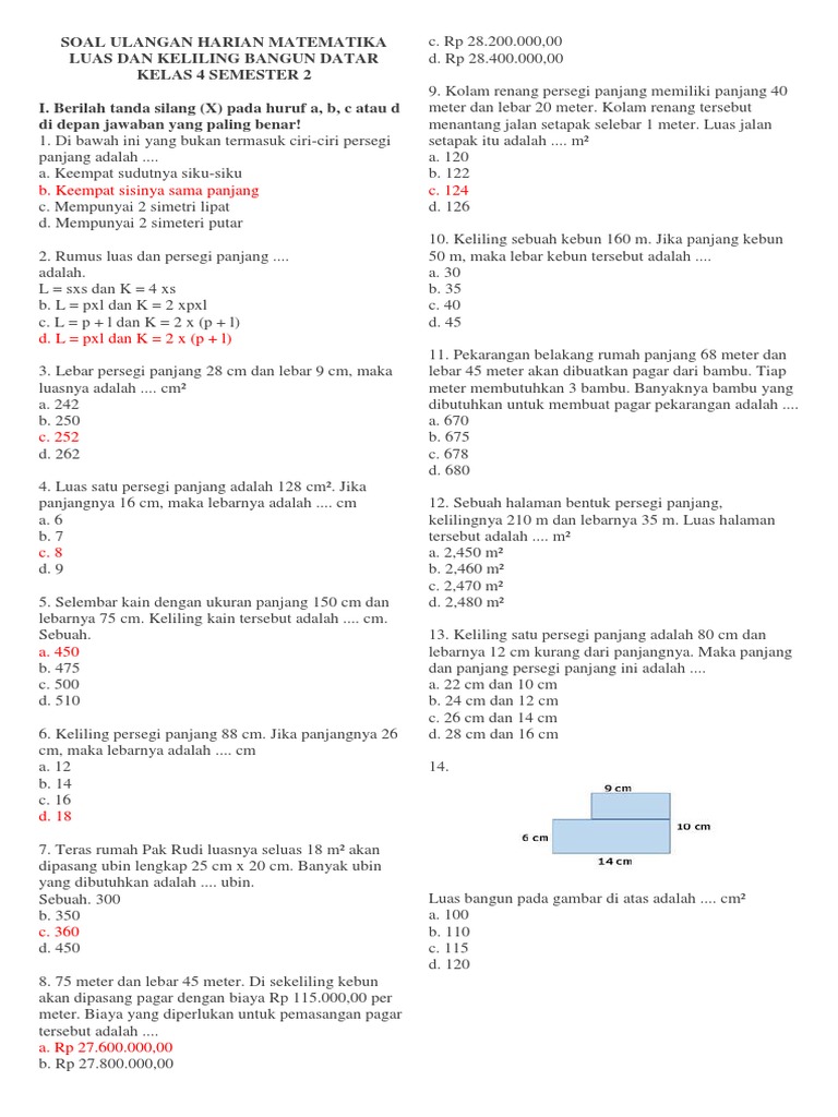 Keliling Persegi Panjang 90 Cm Jika Luasnya 450 Cm2 Panjang Persegi Panjang Itu Adalah A 50 Brainly Co Id