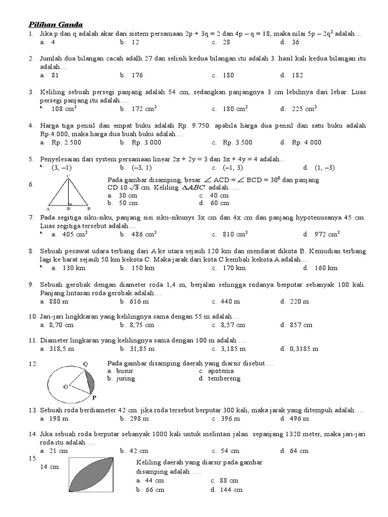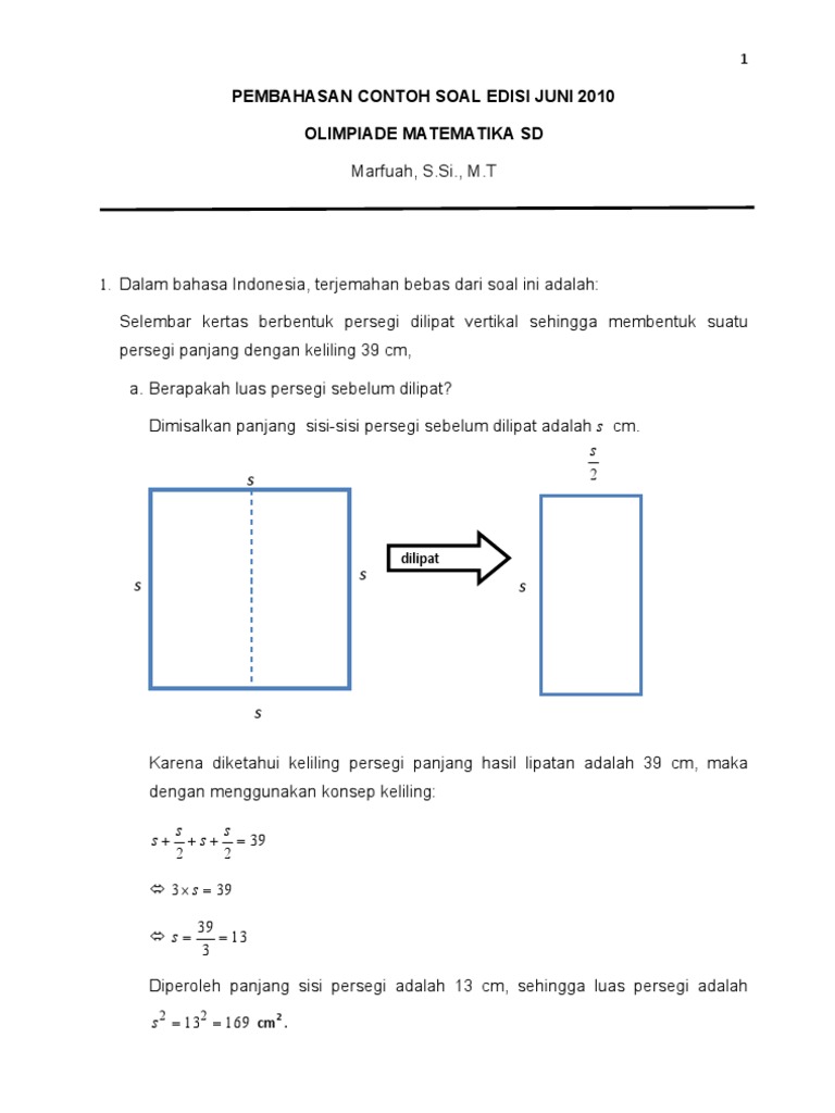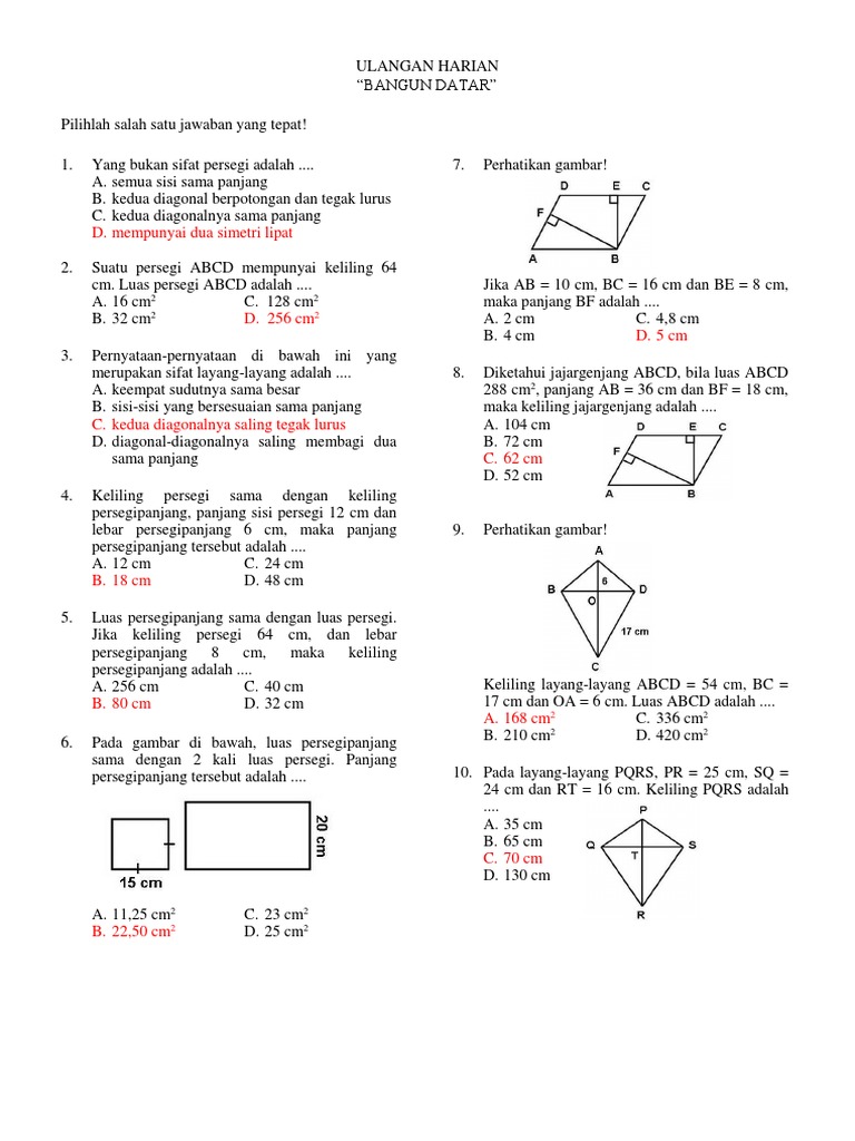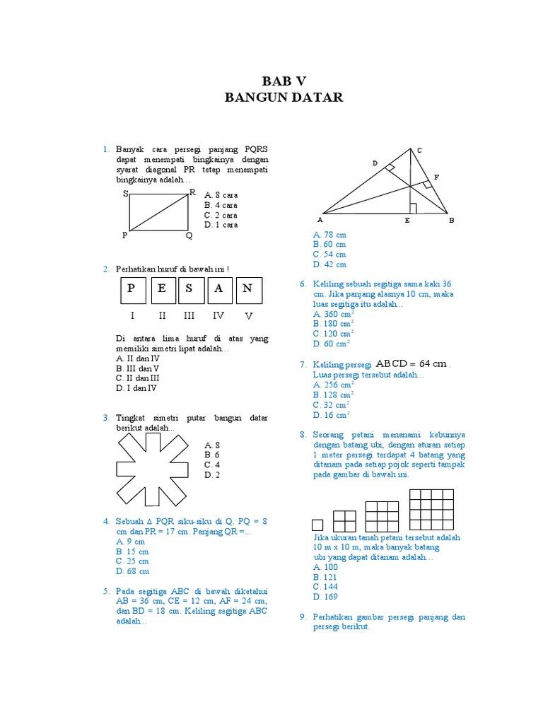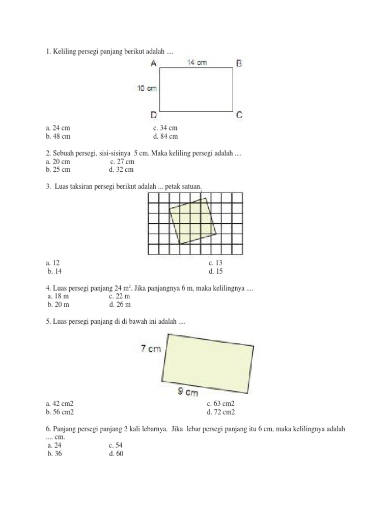 Luas Dan Keliling Bangun Datar 1 Soal Kelas 6 Sd 1 Rumus Luas Persegi Panjang Adalah A B C D Pdf Free Download