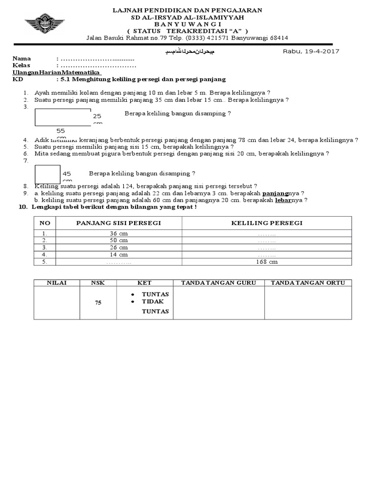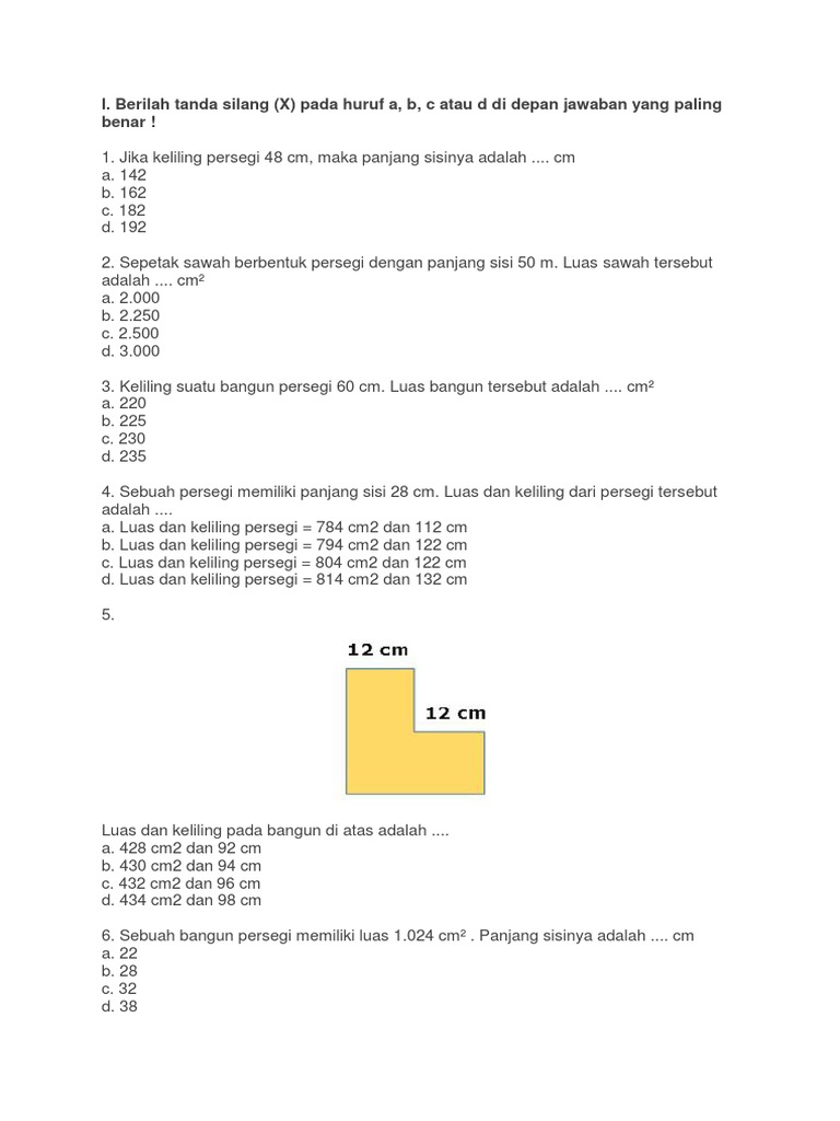 Doc Contoh Soal Dan Pembahasan Tentang Bangun Datar Segi Empat Berupa Persegi Dan Persegipanjang Muhamad Irawan Academia Edu