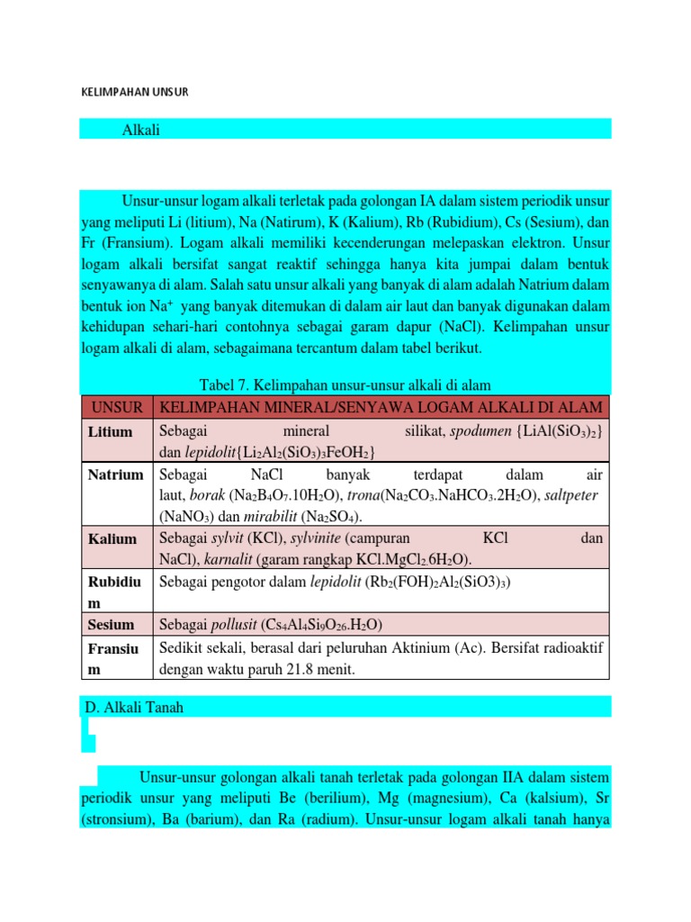 Latihan Soal Kelimpahan Dan Sifat Sifat Unsur A Kelimpahan Dan Sifat Sifat Unsur 1 Data Sifat Fisika Dan Sifat Kimia Dari Unsure Periode Ketiga Dari Kiri Ke Kanan B Pdf Document