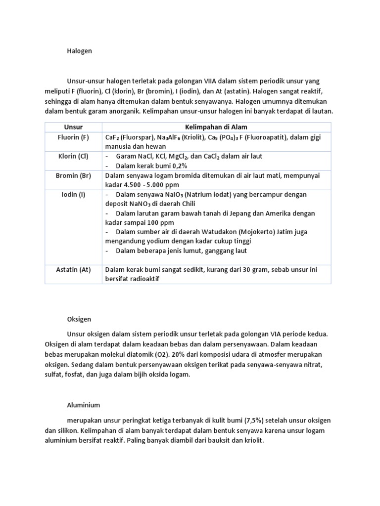 Doc Kelimpahan Unsur Golongan Utama Gas Mulia Halogen Alkaili Alkali Tanah Karbon Nitrogen Fosfor Dan Transisi Periode 4 Di Kulit Bumi Skate Chamberlien Academia Edu