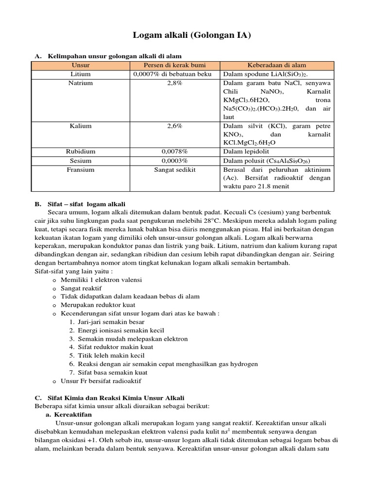 Bahan Ajar Kimia Unsur Alkali Dan Alkali Tanah