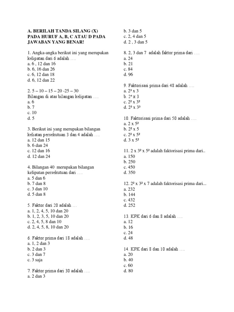 Menentukan Kelipatan Persekutuan Terkecil Kpk Dan Faktor Persekutuan Terbesar Dengan Faktor Prima Materi Matematika Kelas 5