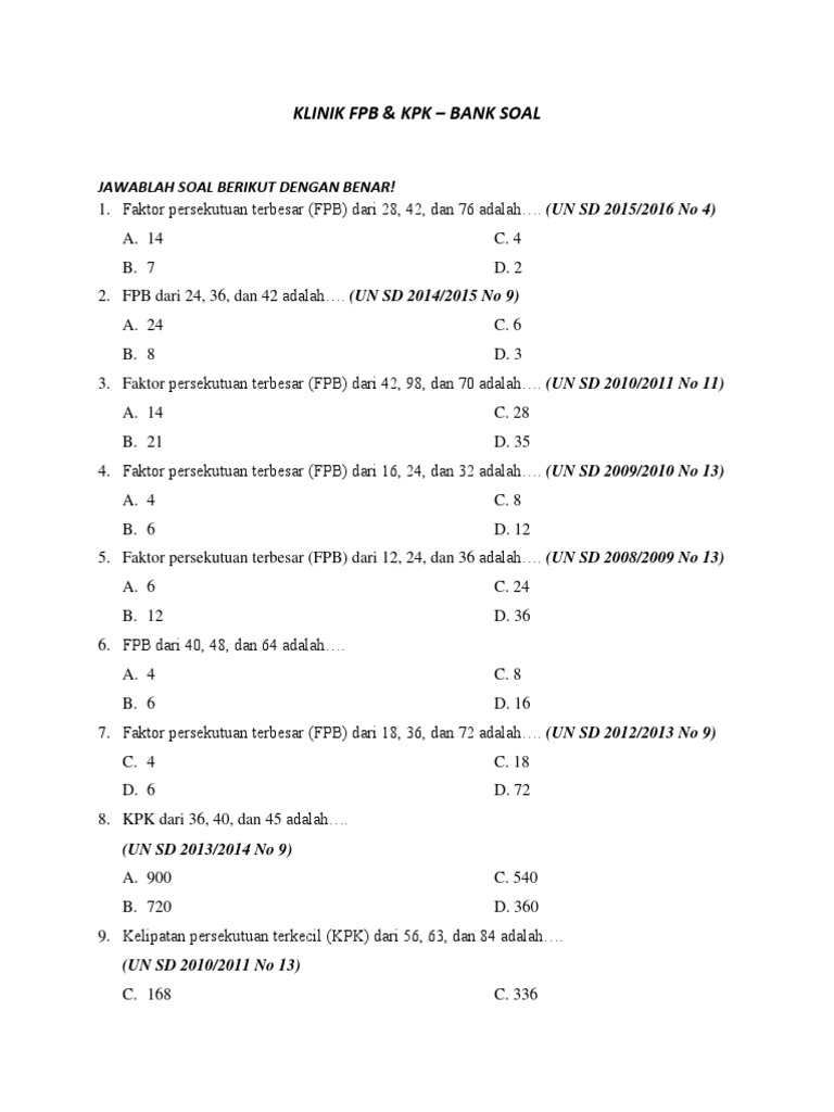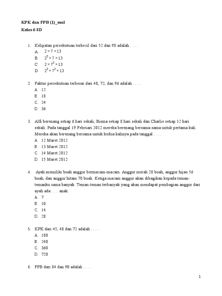 2 Kelipatan Dan Faktor Bilangan Kelipatan 9 Lebih Besar Dari 30 Dan Lebih Kecil Dari 80 D Kpk Dan Fpb Kpk Dari 4 Dan 7 Adalah 2 Pdf Document