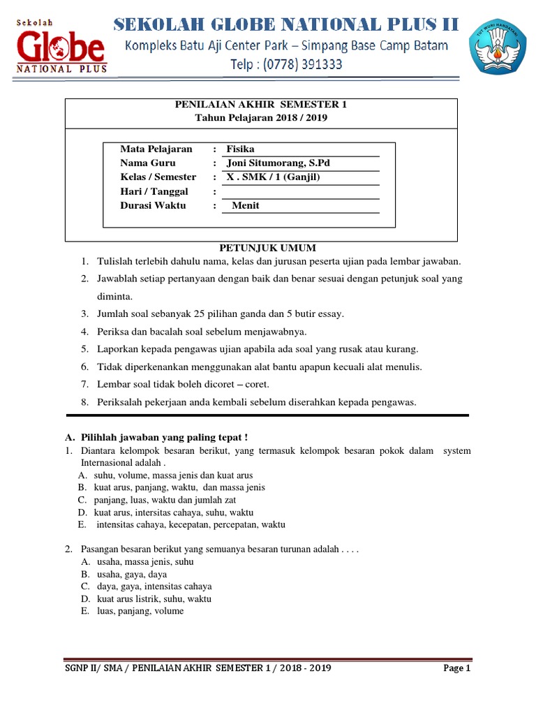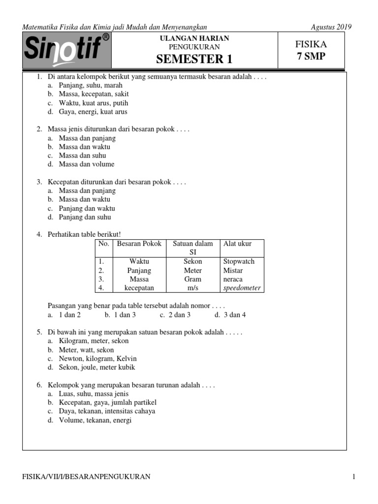 Fisika Kelas 7 Besaran Pokok Dan Besaran Turunan